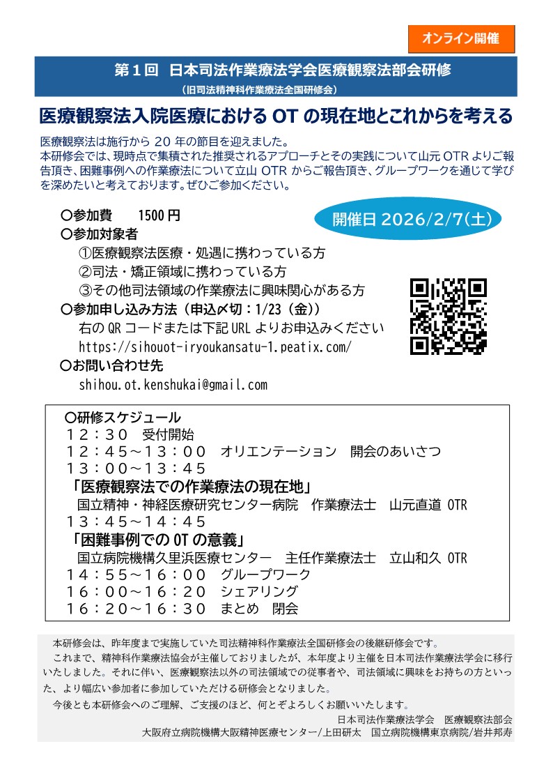 【主催:日本司法作業療法学会(SIG)】第1回 日本司法作業療法学会医療観察法部会研修